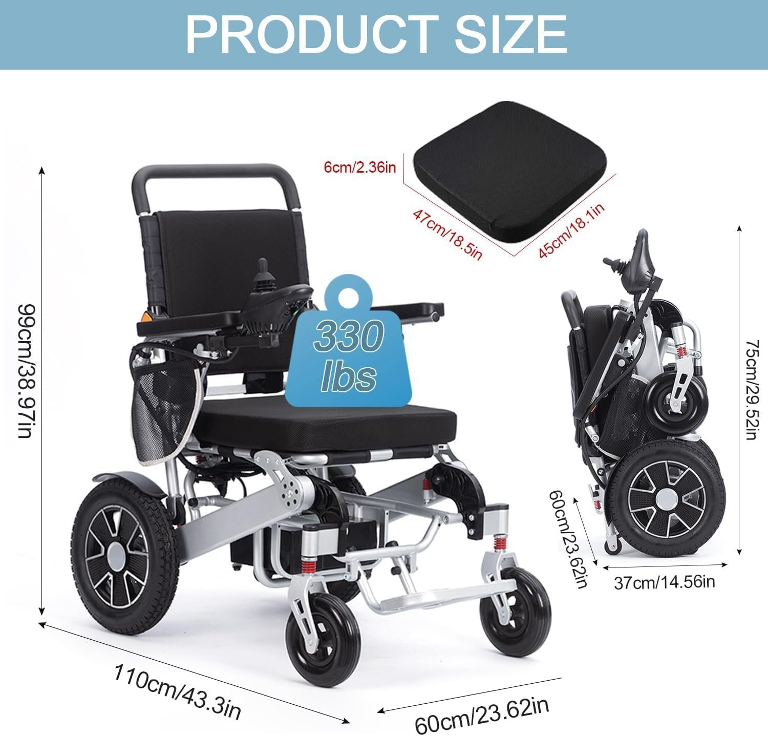 【SAFETY AND STABILITY】The main frame of the electric wheelchair is made of aluminum alloy, and the whole weight is only 55 lbs (without battery). The stable frame structure can withstand up to 330 lbs, keeping you stable while sitting in the chair. Buckled seat belt with adjustable anti-tip wheels to protect the driver’s safety.