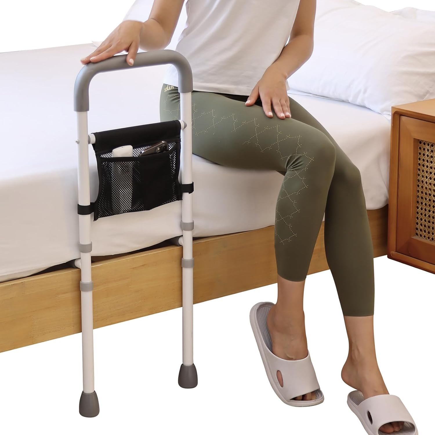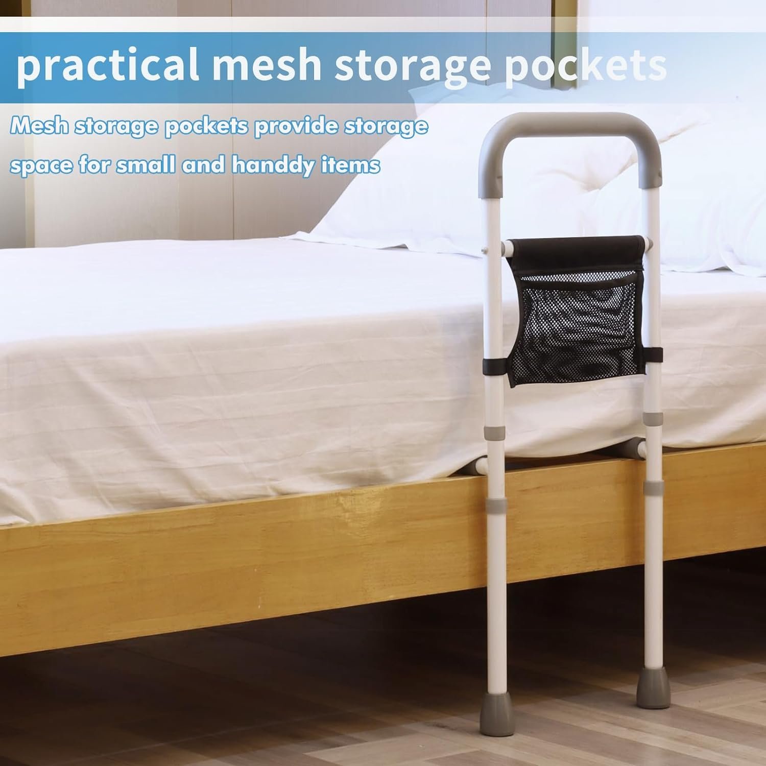 NON-SLIP HANDRAILl: The bed assist rail is padded with soft, non-slip foam provide a comfortable and secure grip and the mesh pocket offers handy storage.