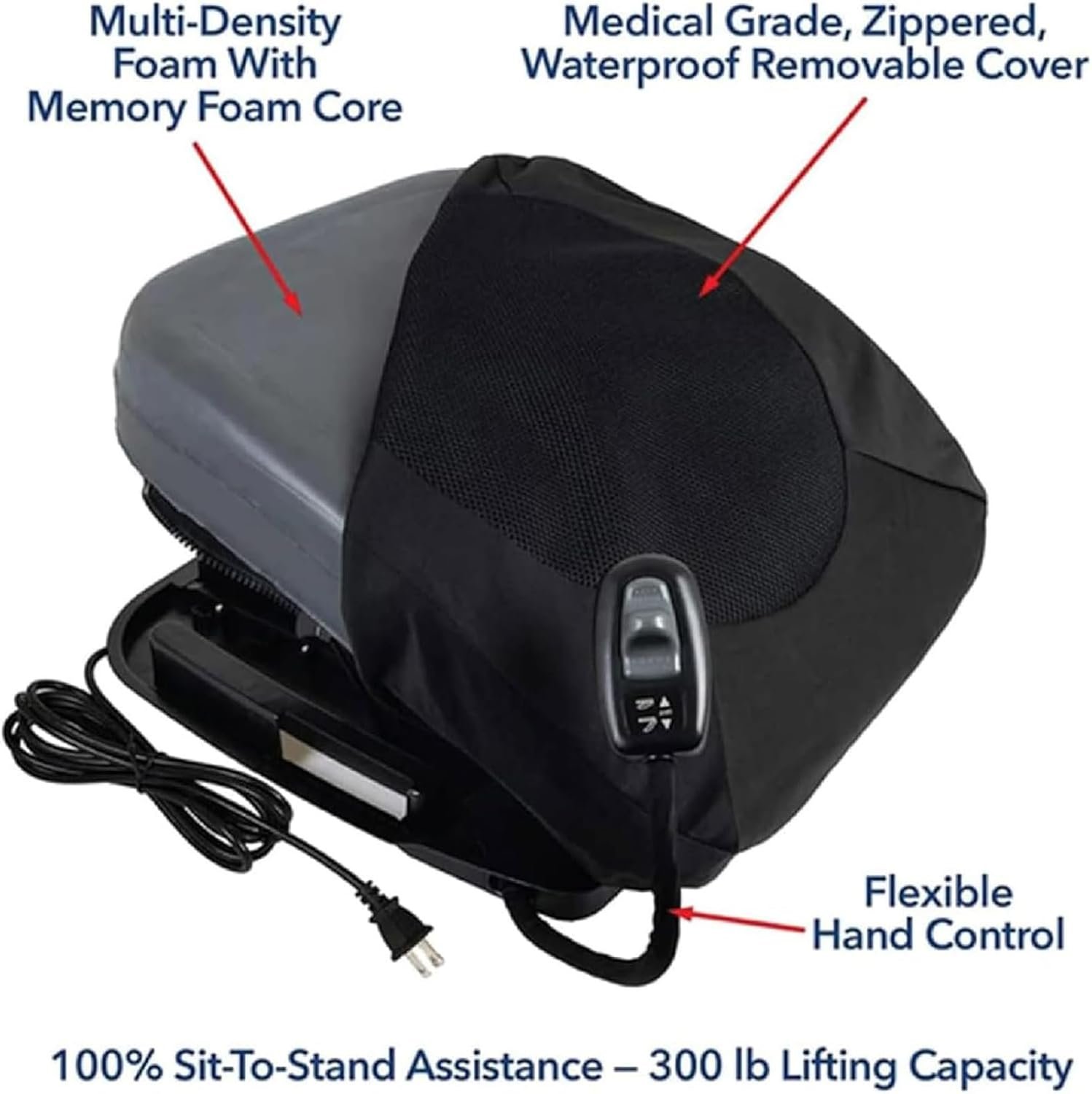 Gentle powered lift with firm seating for those up to 300 lbs. Can be used on the majority of armchairs or sofas,Easy to use and can be positioned at any height