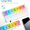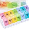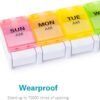 LARGE CAPACITY: This weekly pill box includes 7 colorful cases, with each compartment able to hold up to 8 large fish oils or 12 standard-sized multi-vitamins. (Over all size: 9″ x 4.5″ x 1.2″, individual compartment size: 1.3″ x 1.18″ x 0.82″)