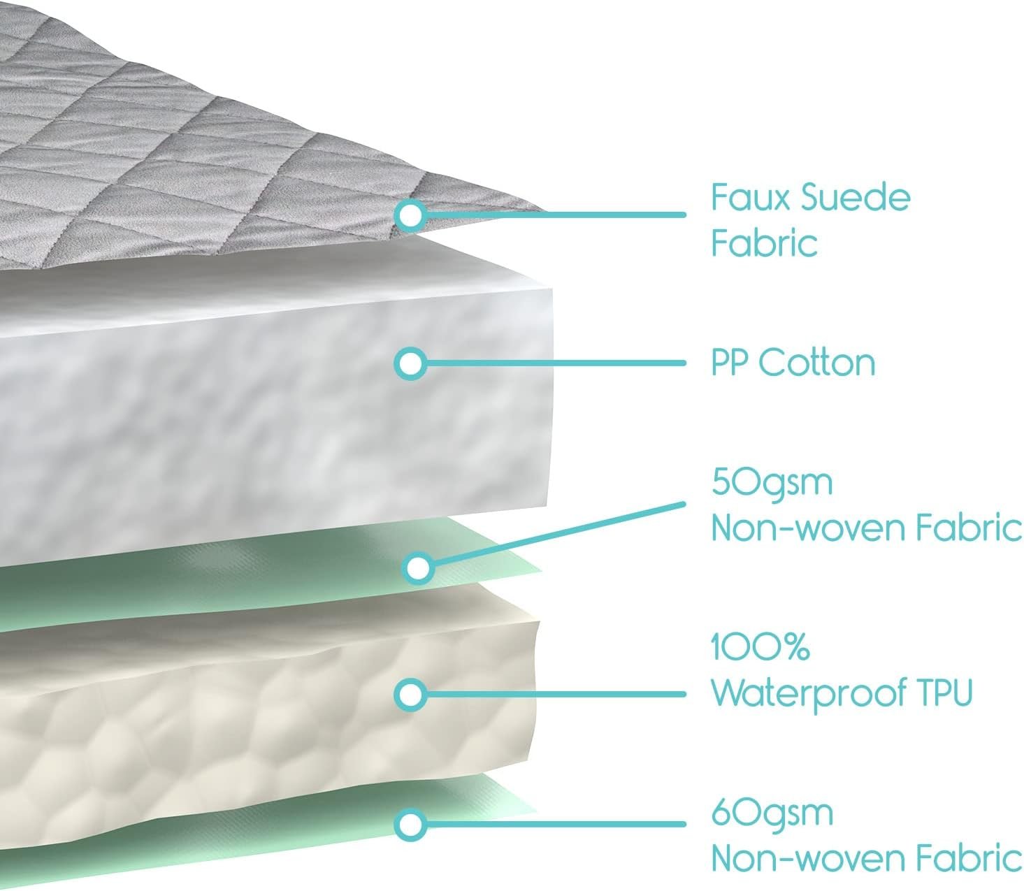 LEAKPROOF BARRIER: Featuring four layers, the middle layers are made with a high-density polyester and rayon blend that is highly absorbent, effectively retaining accidents and spills. The base layer is nonslip and waterproof to provide added protection and stability.