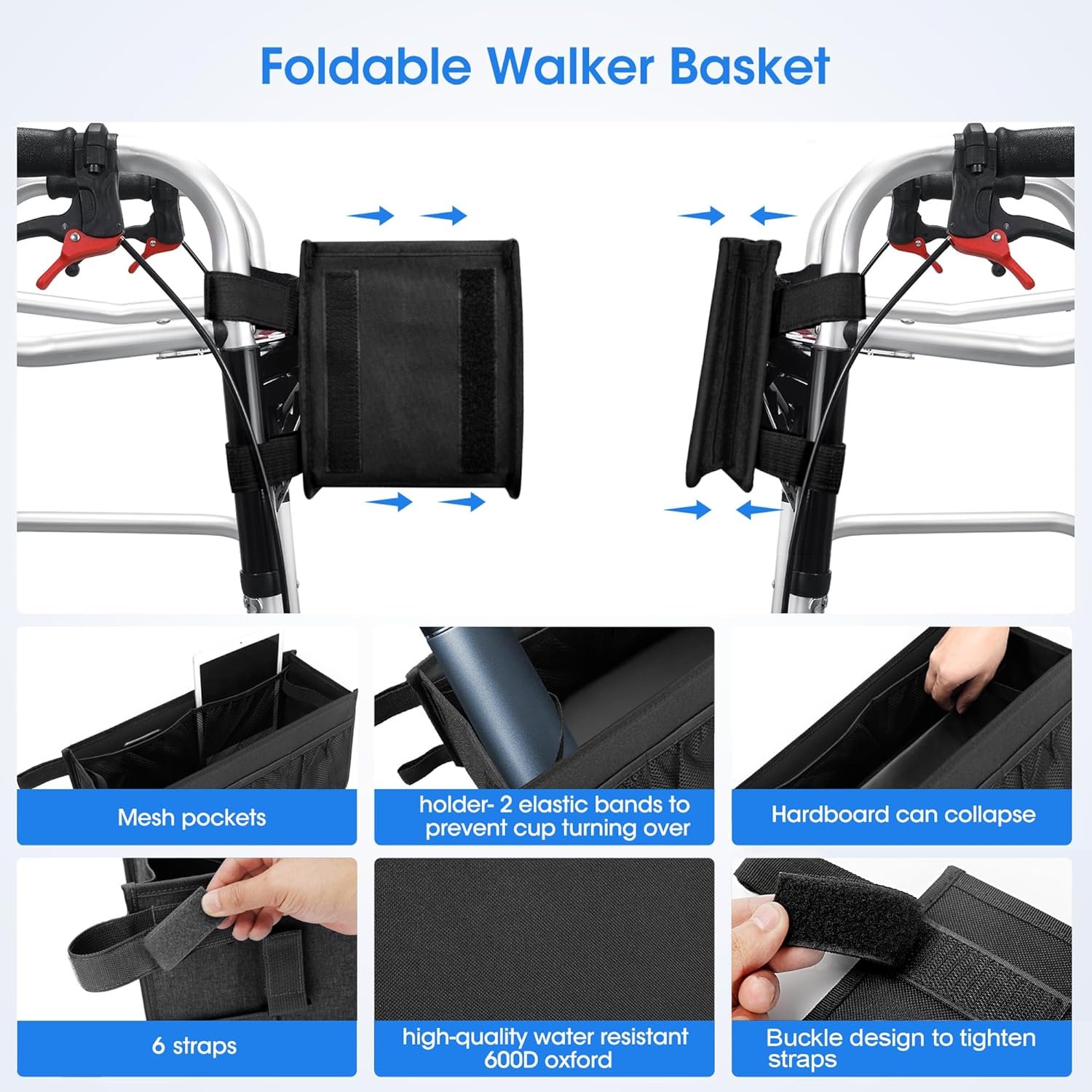 Optimized upgraded Design: -Why Choose us? We have researched market needs from 2000+ walker users, most of them want a Walker Storage to hold something, but want basket convenient to pick up & put, not a bag. And also avoiding like Metal Walker Basket small falling through the gaps. And we have adjusted the Centre of Balance of the Basket, so that there is no chance of the weight of the contents tipping over the walker. So, that’s us.
